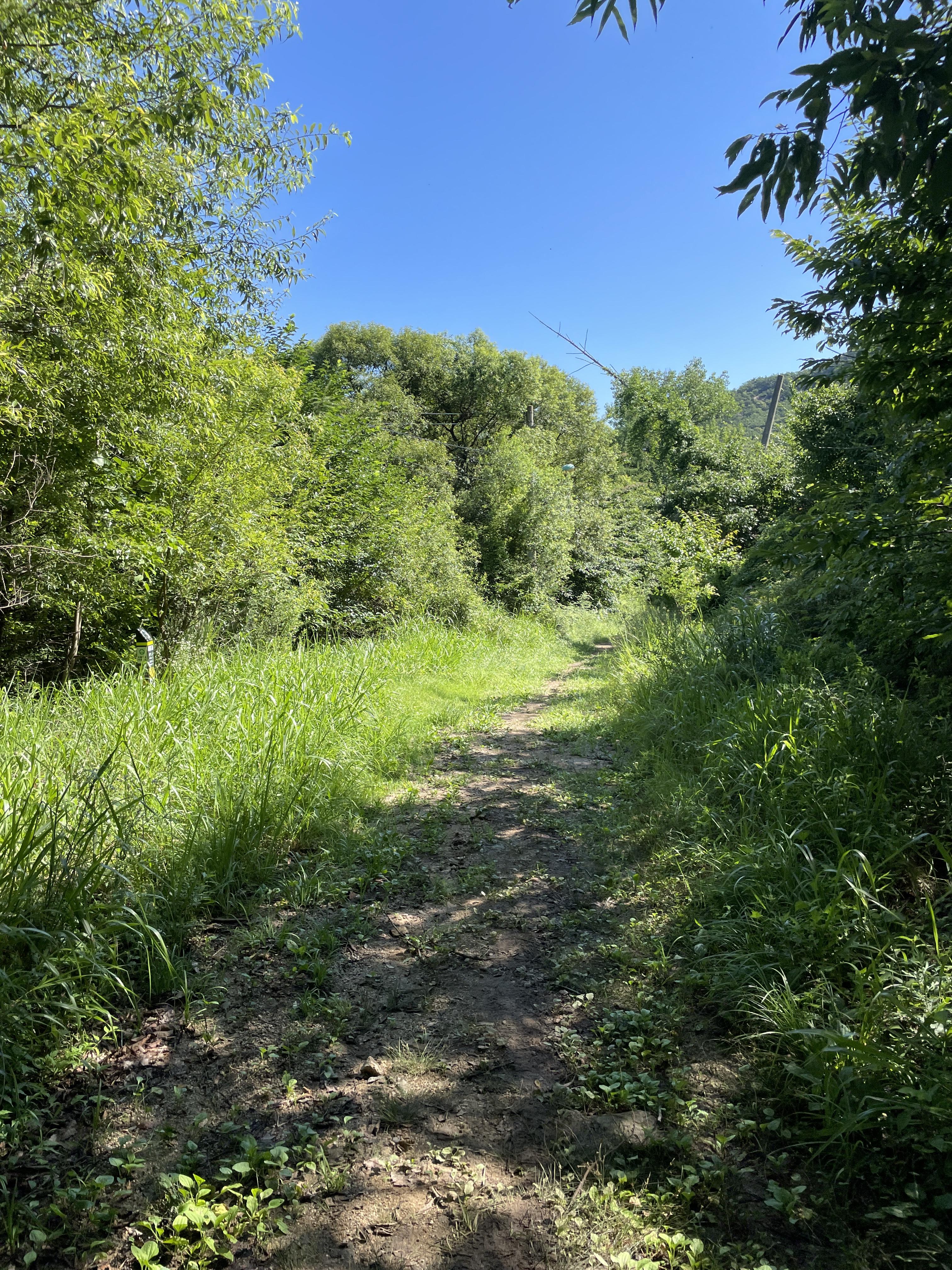 그렇게 매력적인 길은 아니었고 혼자 왔으면 조금 무서웠을 것 같다. 약 30분 정도 걷다 보면 살짝 헷갈리는 구간이 나온다. 안내 표시로는 왼쪽 길을 가리키는 것으로 보이는데 막상 보면 뭔가 길 같기도 하면서 길이 조금 이상하다는 것을 알 수 있다. 만약 위 사진처럼 헷갈리는 곳을 만난다면 왼쪽이 아닌 오른쪽 길이 맞다.