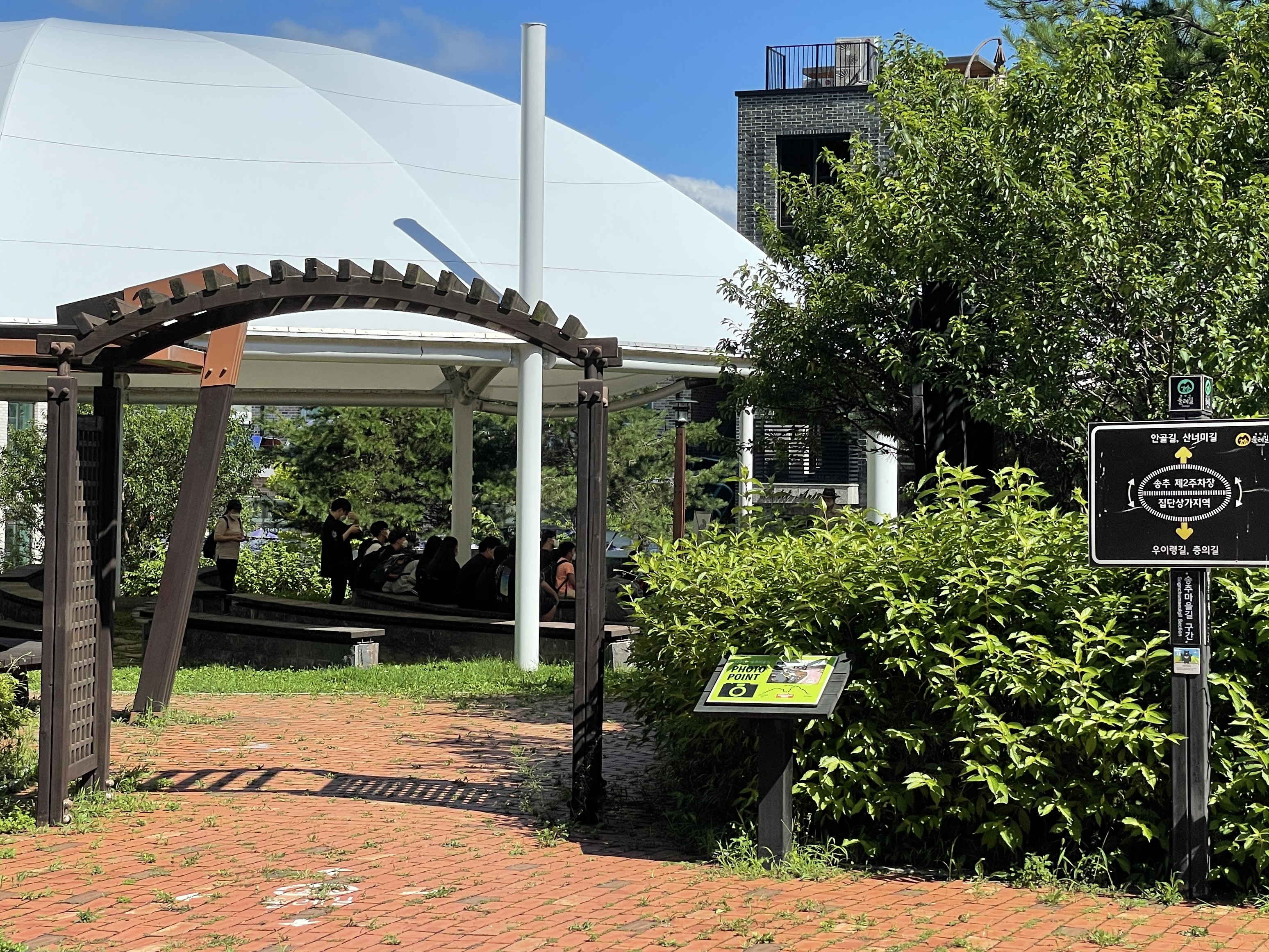 포토 포인트는 처음 나오던 길 방향으로 조금 가다 보면 야외무대가 있다. 그곳 입구 부근에서 인증 사진을 찍으면 된다. 근처를 조금 더 둘러보다가 보이는 길을 따라 나갔다.