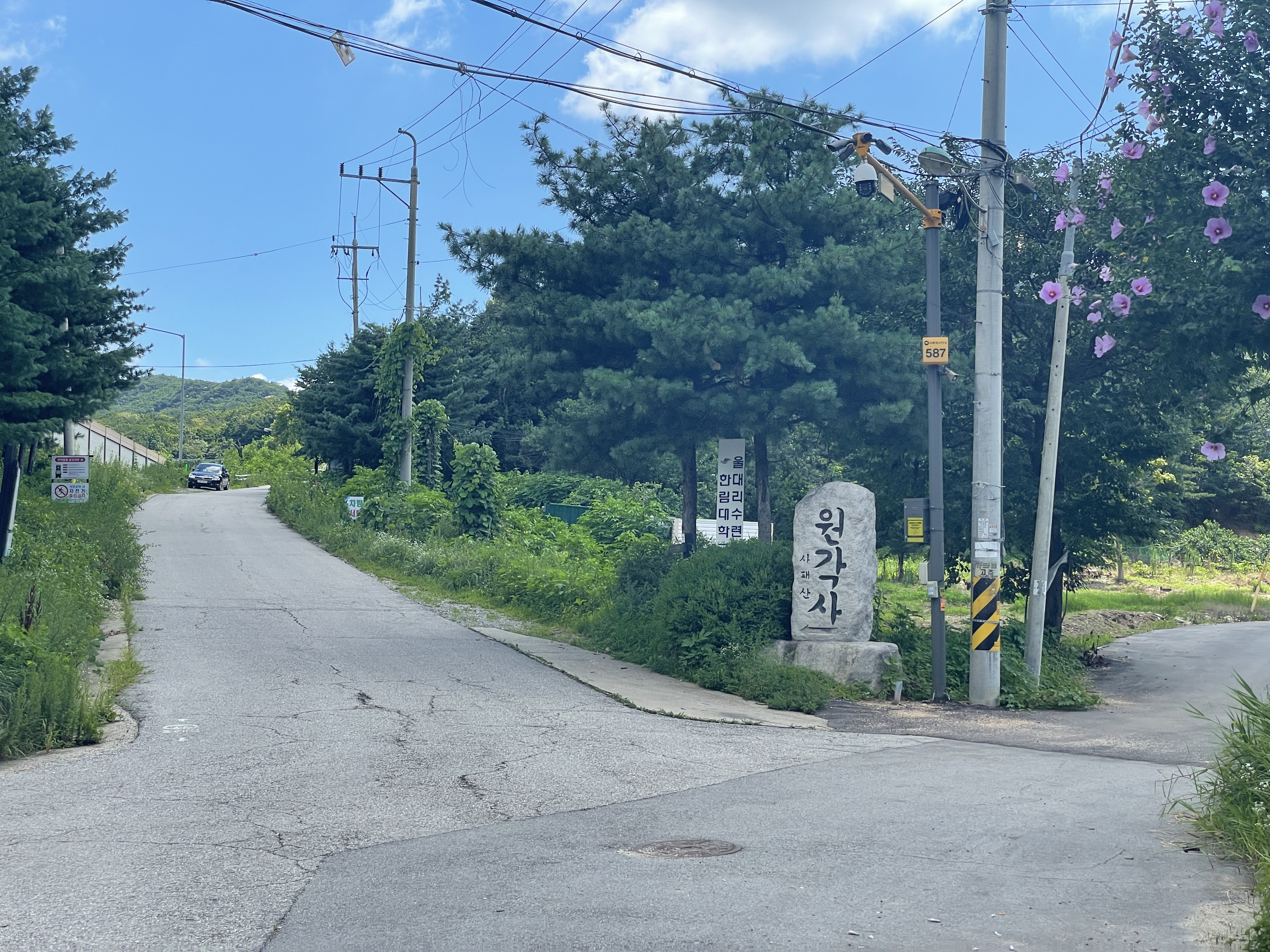 이 길을 따라 쭉 가면 원각사가 있는데 길을 걷다 보면 사패산을 오르거나 원각사를 찾는 사람들, 차량을 의외로 많이 만날 수 있다. 이렇게 많이 찾는 걸 보면 원각사는 꽤 큰 절인가 싶기도 하고. 이날 따라 너무 날이 뜨겁고 벌레도 많아 지쳐서 어이없는 마음으로 아까 그 장소까지 돌아 나왔는데, 만약 날씨가 좀 선선하고 기력이 남았다면 원각사를 구경하고 나오는 것도 좋았을 것 같다. 다시 나왔을 때 구경하고 올 걸 그랬나 하고 살짝 후회했다. 우리처럼 아무 생각 없이 여기까지 와버렸다면 원각사도 한 번 들러보자!