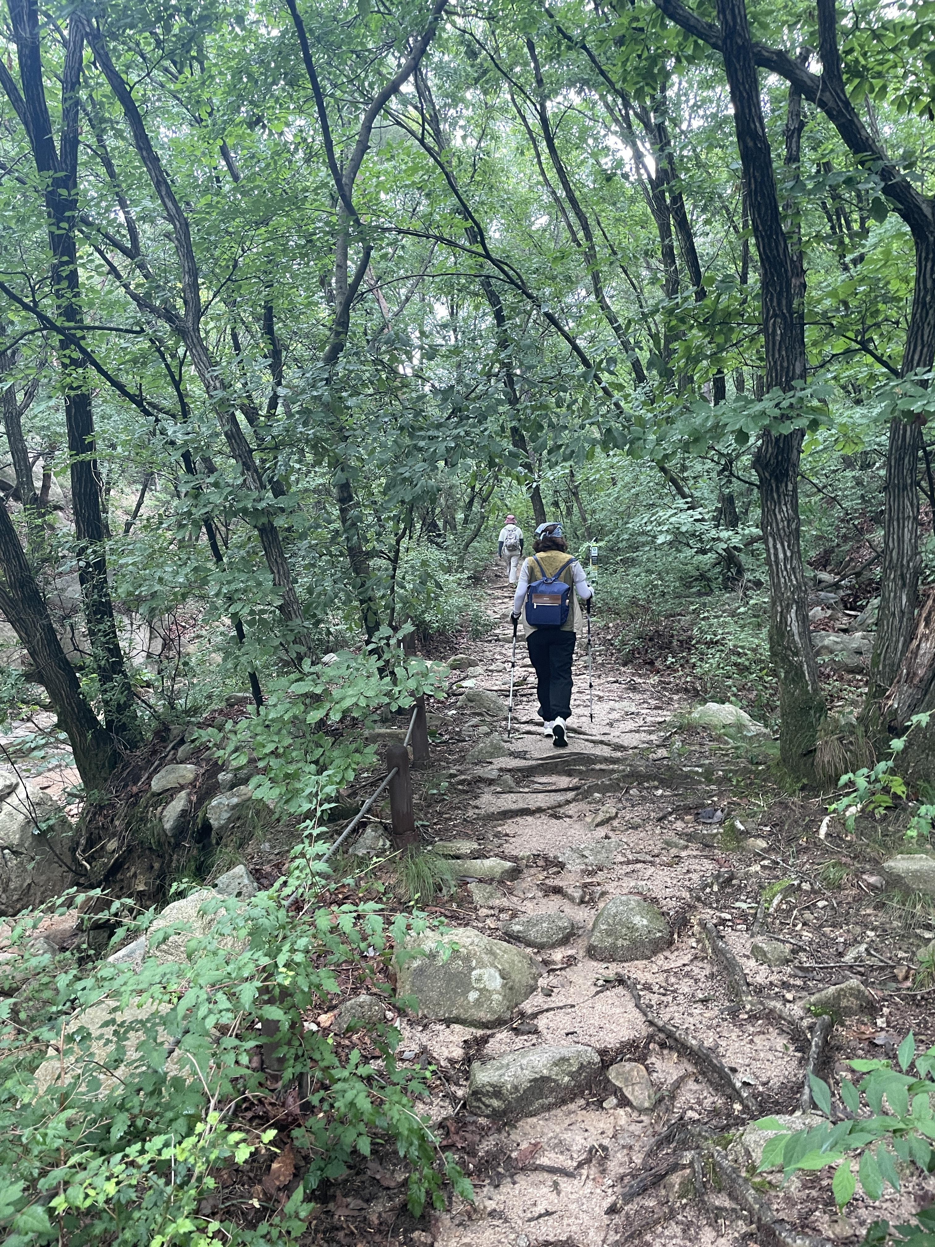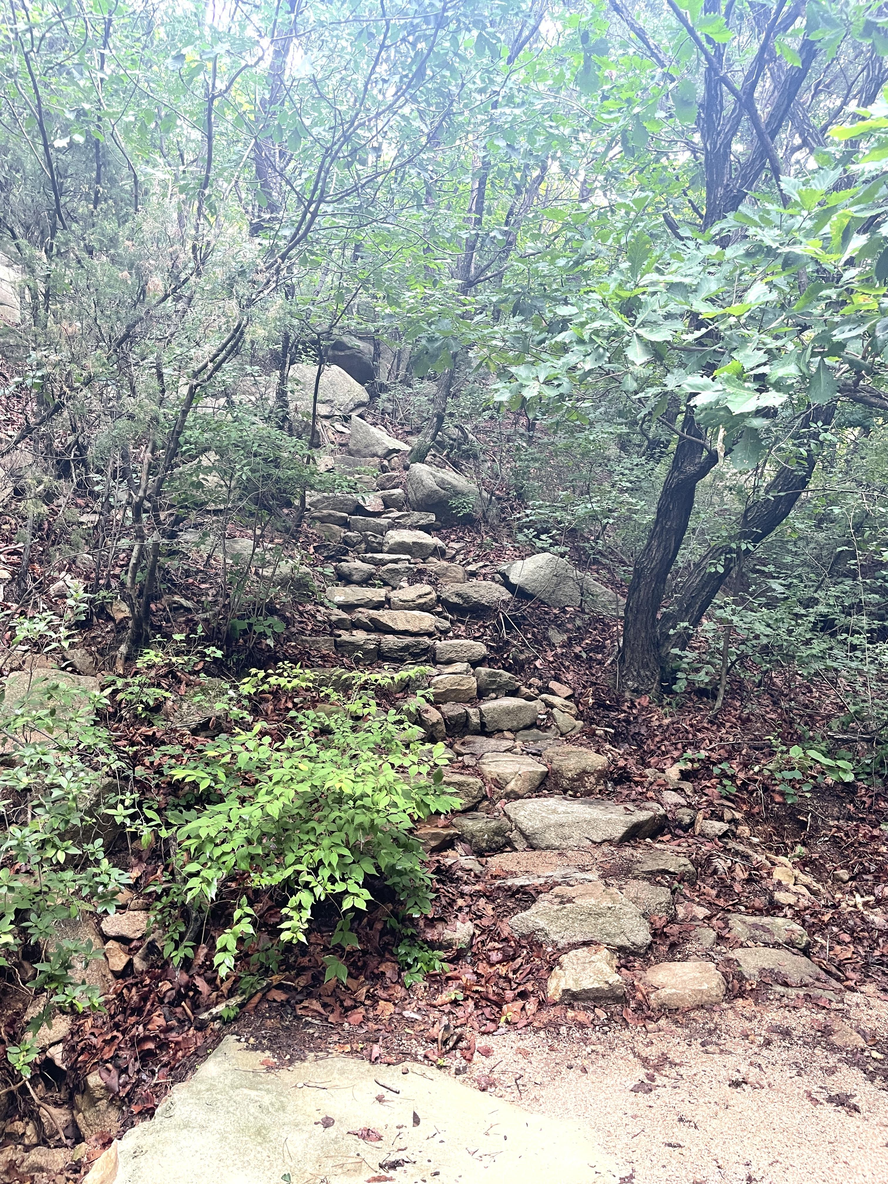 사실 '상'이라고 표기되어 계단이 많을 것을 우려했던 것과 다르게 생각보다 평탄한 길이 쭉 이어졌다. 약간의 계단, 흙길, 돌길 등 다양한 느낌의 길이 번갈아서 나왔다. 중간중간 계곡도 보여 물소리도 들렸고 날이 흐려 사진이 그렇게 매력적으로 나오지는 않았지만 개인적으로 길이 꽤 마음에 들었었다.