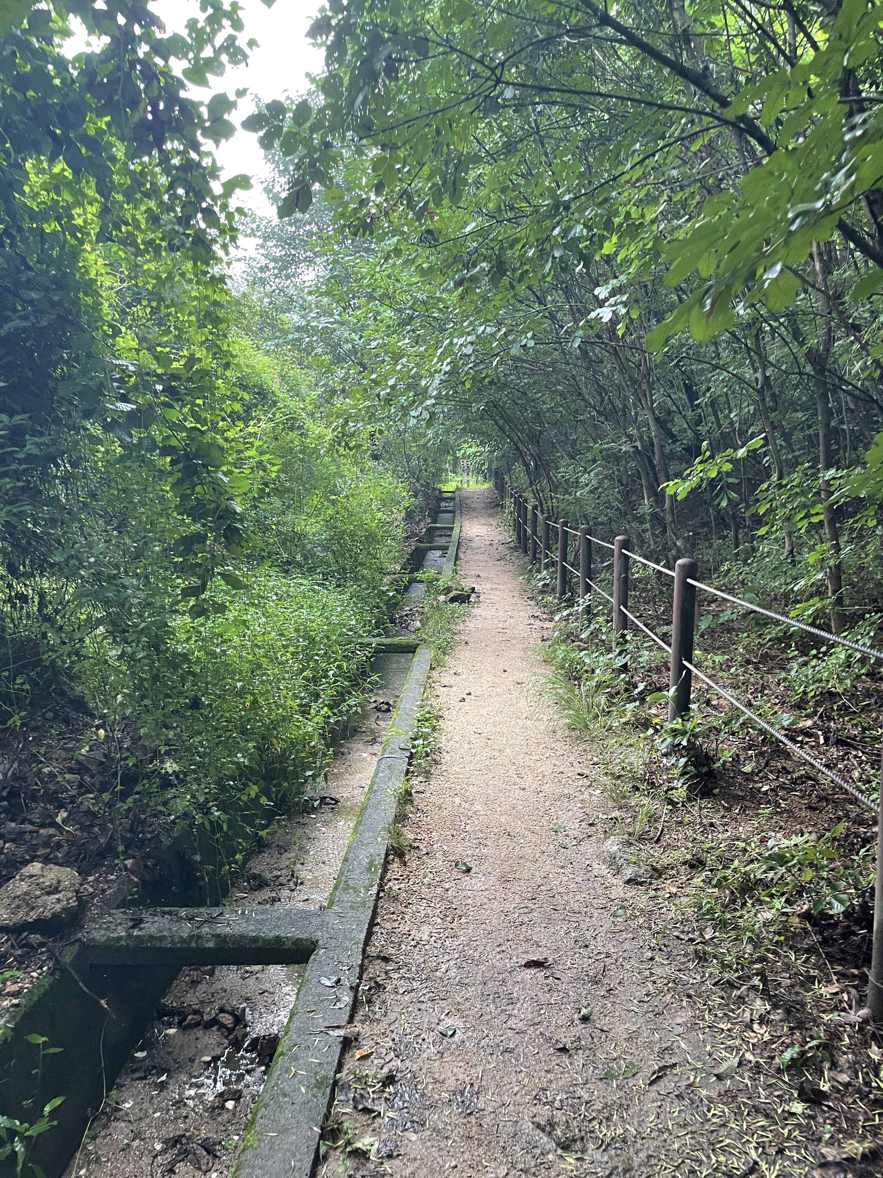 시내가 보여 마치 이대로 마칠 것만 같지만 나름 낭만 있는 나무 벤치를 지나치고 나면 다시 시내가 보이지 않는 안쪽으로 들어가게 된다. 가다 보면 나무 데크길이 나오고 사람이 지나다니지 않을 것만 같은 좁은 오솔길을 지나면 다시금 산길이 나온다. 끝날 듯 말 듯 약간 밀당하는 기분이다. 최근 몇 구간 동안 당한 게 있다 보니 가다가 중간에서 구간 끝나는 건 아니겠지? 라며 농담을 주고받았다.
