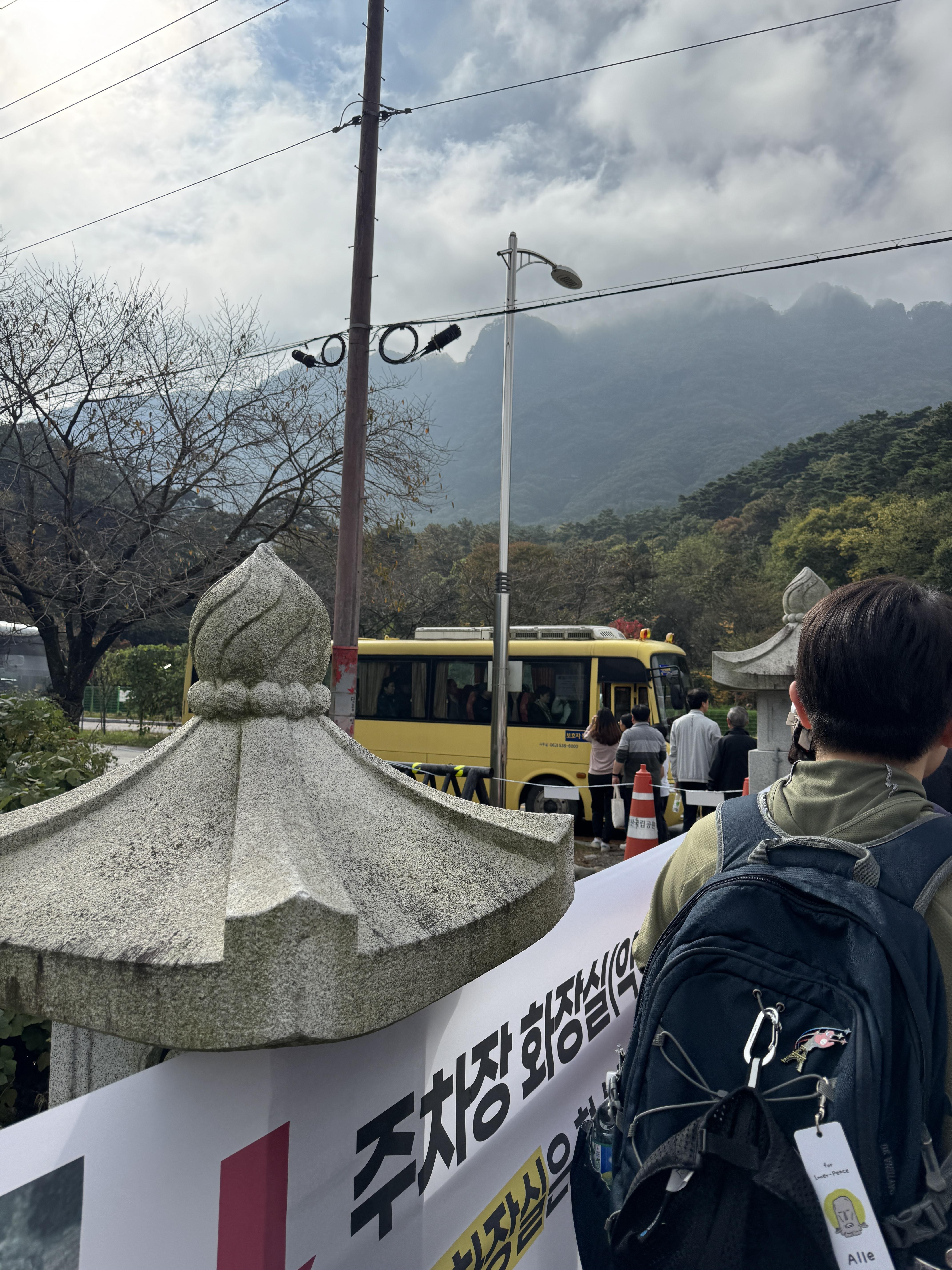원래 알레 일정표는 2주차장에 도착하여 하이킹을 시작하는 일정이었다. 하지만 단풍 축제 기간이고 굉장히 많은 관광객이 찾는 시기여서 인지 2주차장에 내릴 수 없었고 4주차장에서 하차했다. 2주차장의 경우 셔틀버스를 타고 진입할 필요가 없지만 4주차장의 경우에는 하이킹 시작 지점까지 거리가 꽤 멀기 때문에 무료 셔틀버스를 이용해야한다.