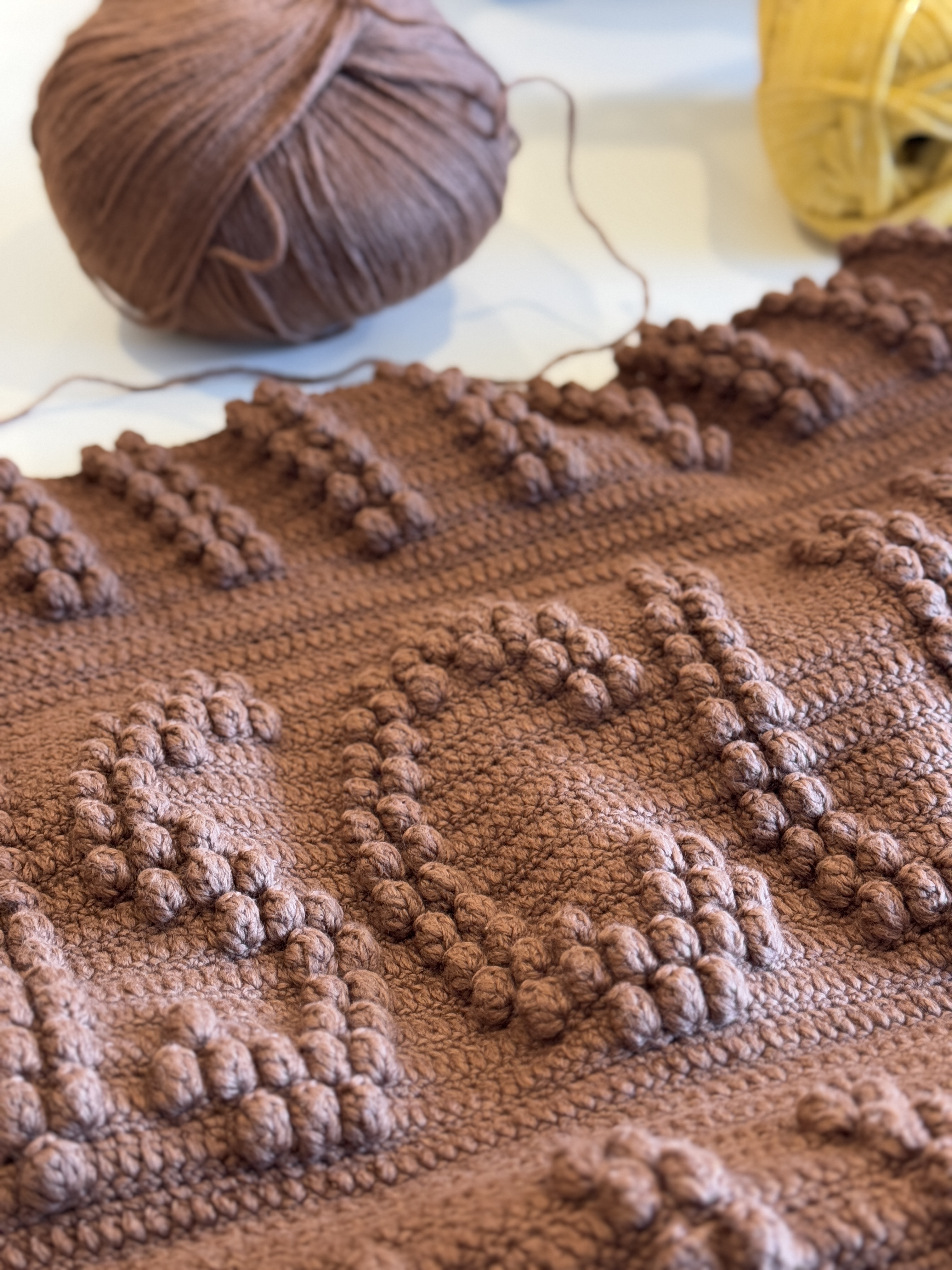 음료를 받고서 뜨개 타임을 가졌습니다. 꽤 오랫동안 조금씩 떠온 비스킷 블랭킷과 함께 했는데, 이제야 거의 끝이 보이네요. 회사 점심 시간에 조금씩 했더니 한 세월이 걸렸습니다. 🙄