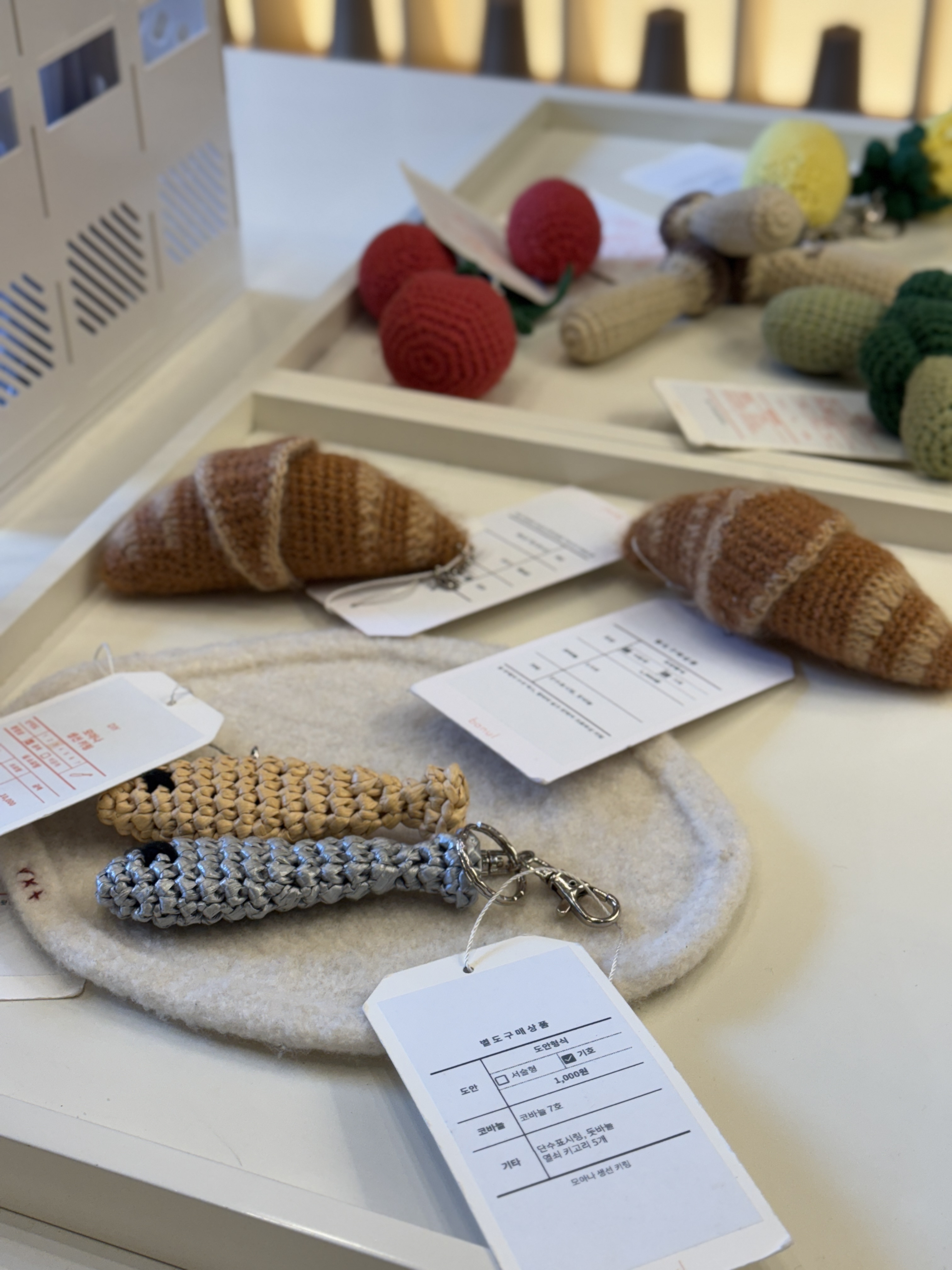 크로와상 키링은 넘 귀여웠고 프로젝트 백은 생각했던 것보다 사이즈가 컸어요. 이번에 나오자마자 품절되었던 저 목도리… 실제로 보니까 진짜 촉감도 너무너무 좋고 예뻐서 꼭 떠야겠다는 다짐도 했습니다. 알파카 부클실로 만든 양세마리 파우치는 넘 귀엽고 촉감도 마음에 들어서 바라클라바 만들고 남는 실로 만들어야겠다는 생각이 절로 들더라구요. 정말 뜨고 싶은건 한도끝도 없는 것 같습니다. 🥹