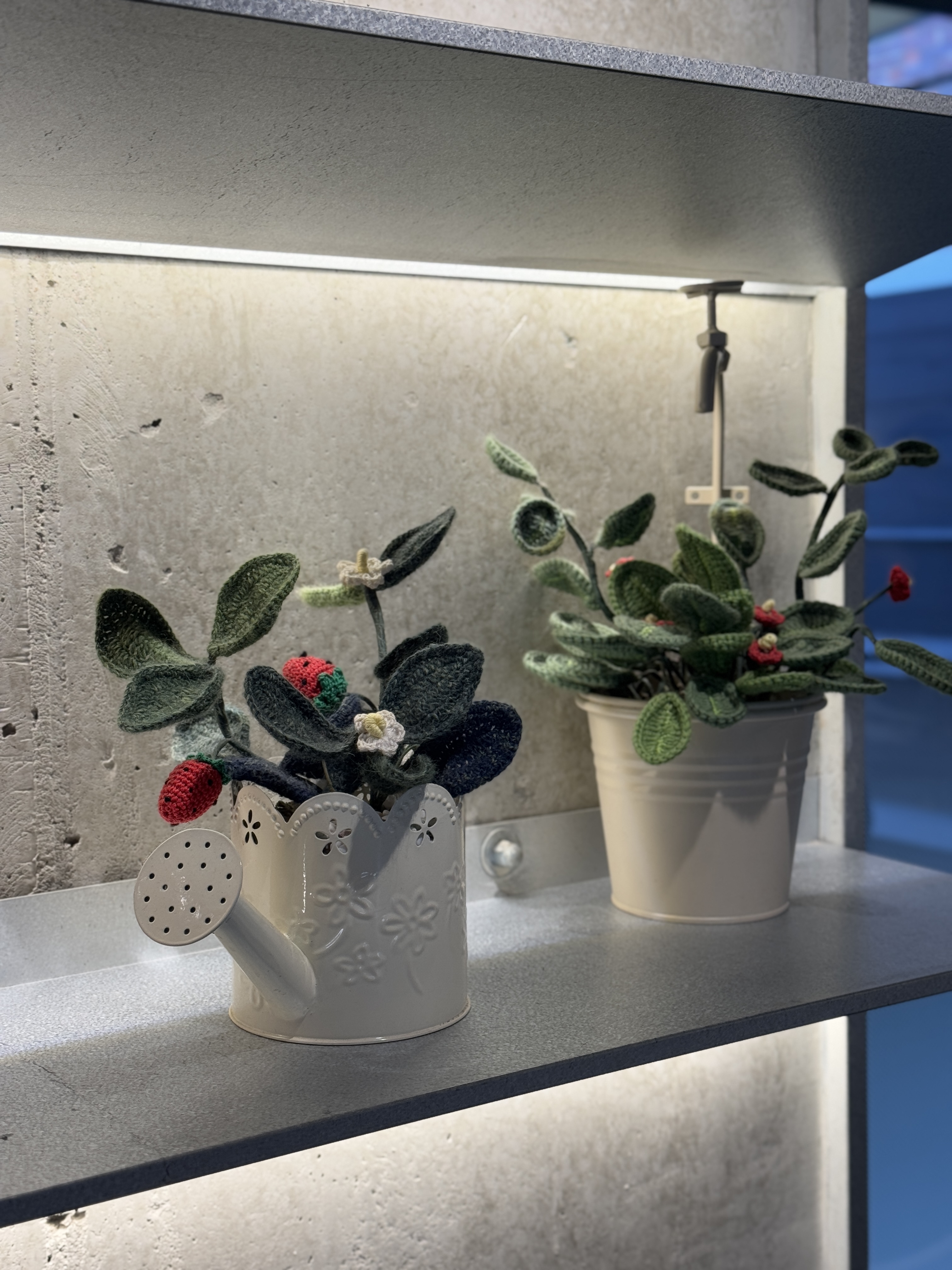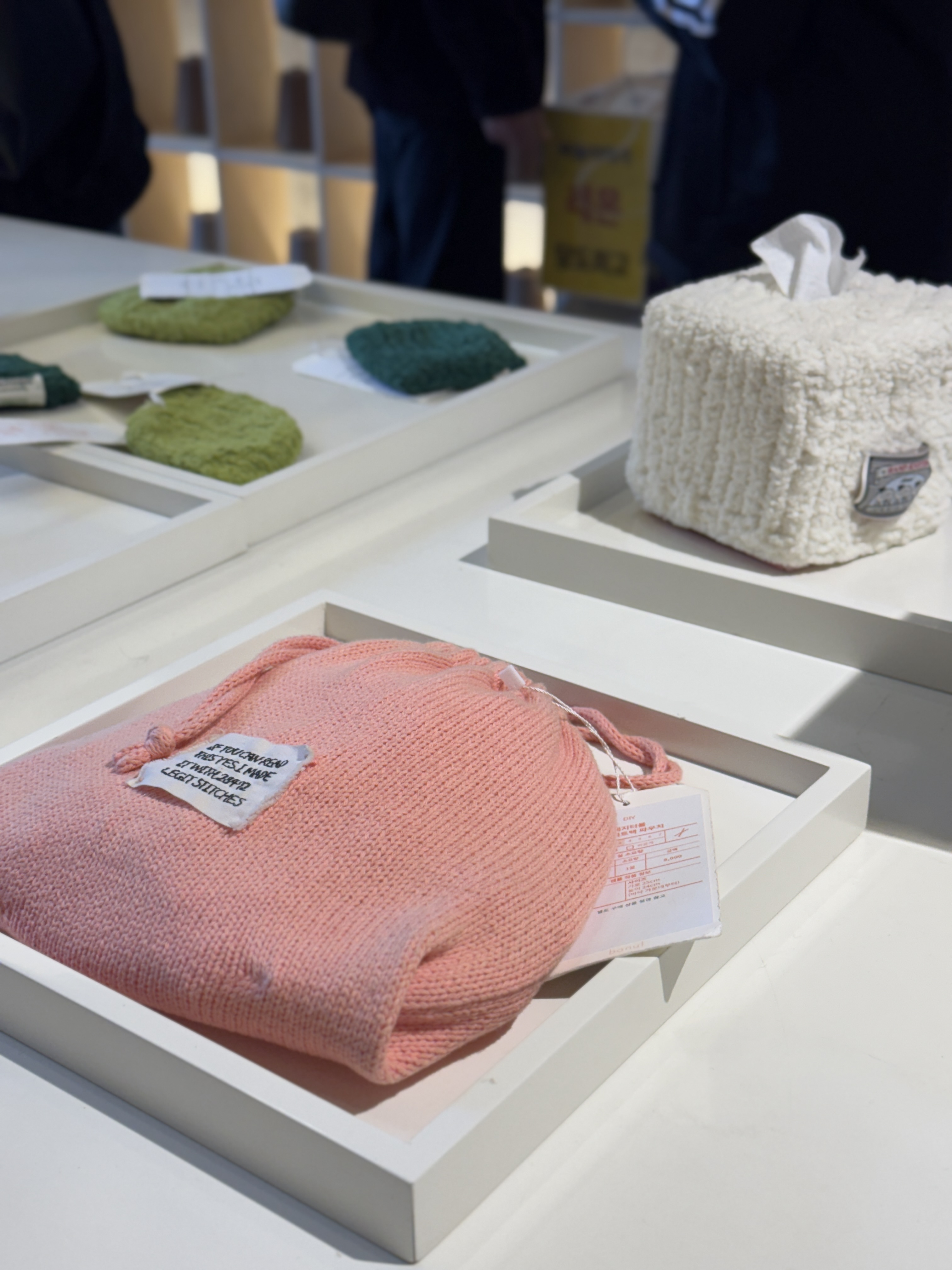뜨개인들의 자연스러운 만남을 위한 팻말도 신기했고, 식물이 뜨개로 된 걸 보며 역시나 싶었습니다. 너무 예쁘게 잘 떠서 얼핏 보면 진짜 같아요.