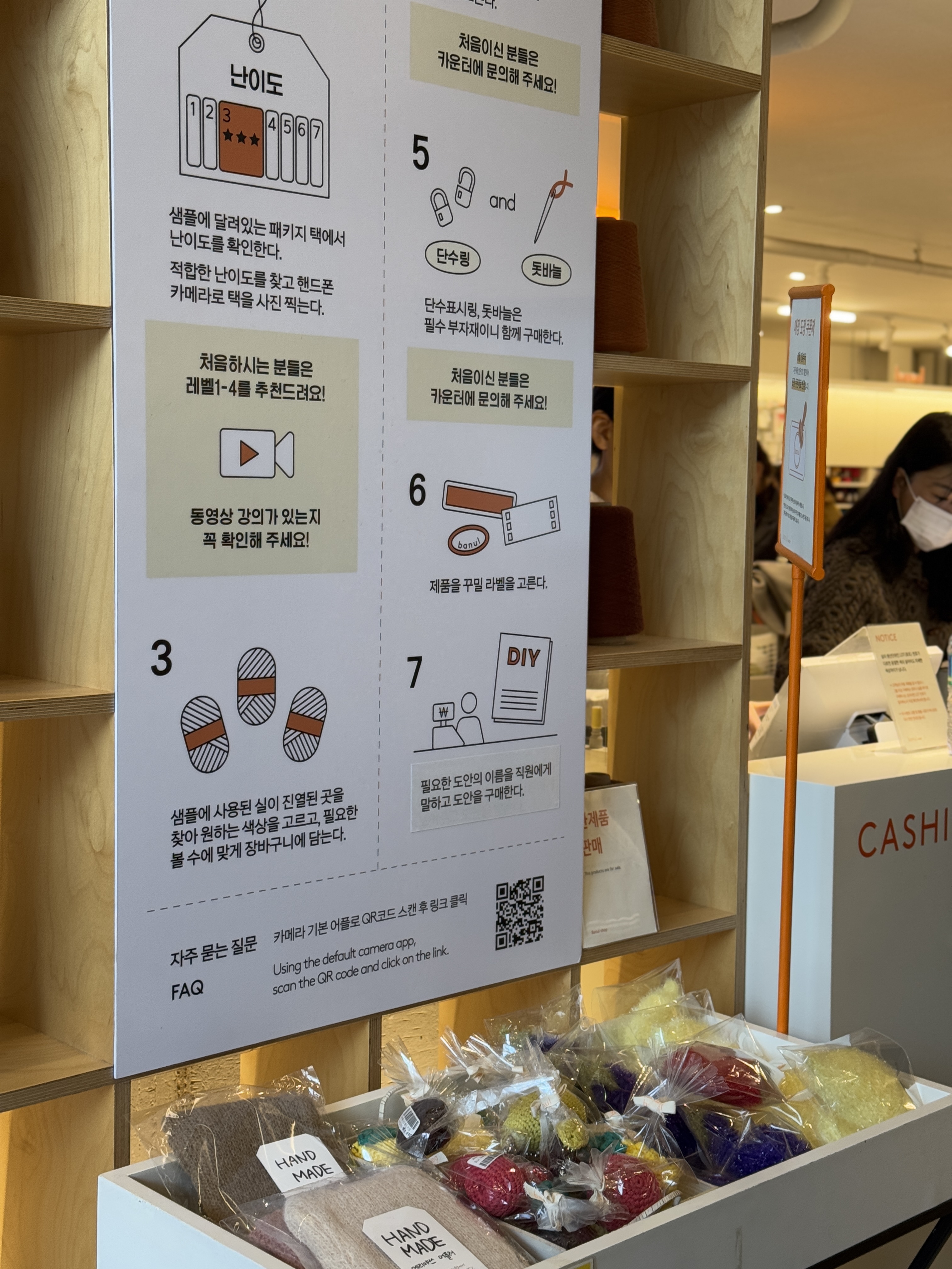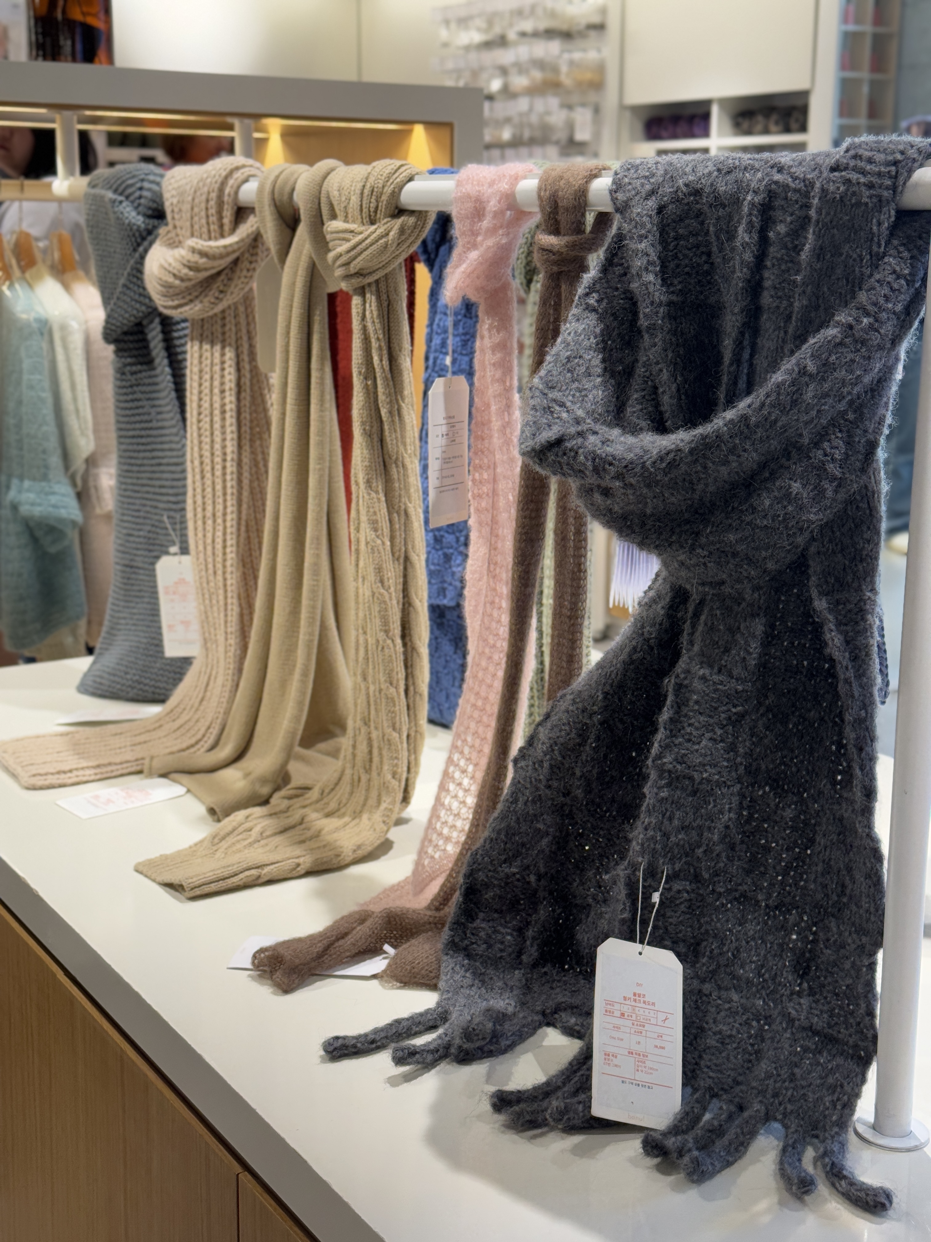 뜨개질을 좀 하다가 1층으로 내려가 실 구경을 했습니다. 지금 뜨고 있는 비스킷 블랭킷도 있었고 구매한 패키지 작품, 그리고 궁금했던 작품들도 있었는데 생각보다 더 마음에 드는 것들이 있어서 얼른 뜨고 싶다는 생각이 들었습니다.
