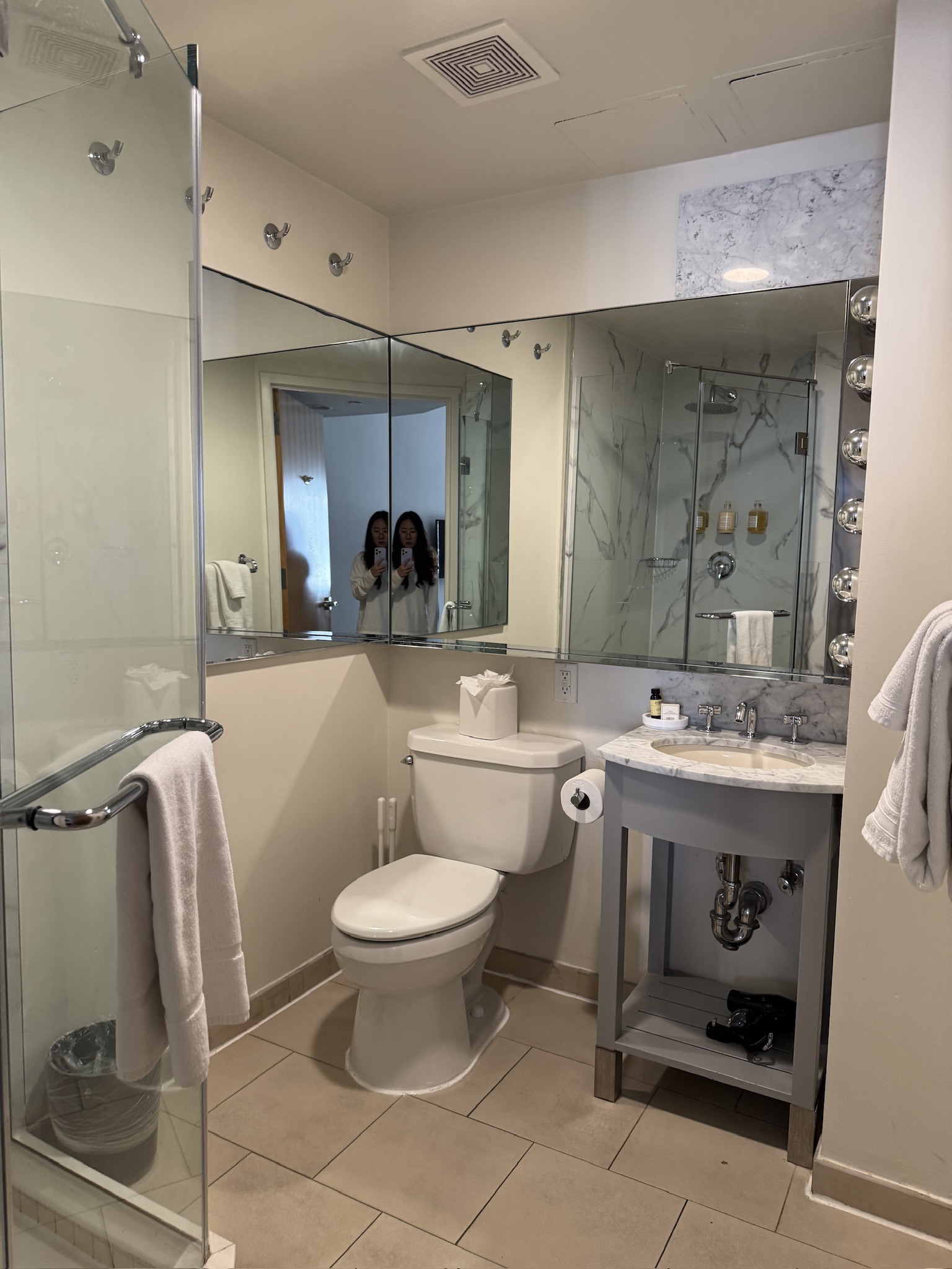 둘째로는 정말 시설이 깨끗하고 좋다. 뉴욕 여행을 하면서 두 곳의 Sonder를 이용했는데 모두 룸 상태가 매우 깨끗하고 넓어서 좋았다. 커피 머신, 드라이기, 샴푸/컨디셔너/바디워시 등이 구비되어 있고 수건이나 커피 캡슐도 더 필요하면 공용 공간(?) 같은 곳에서 챙겨갈 수 있다.