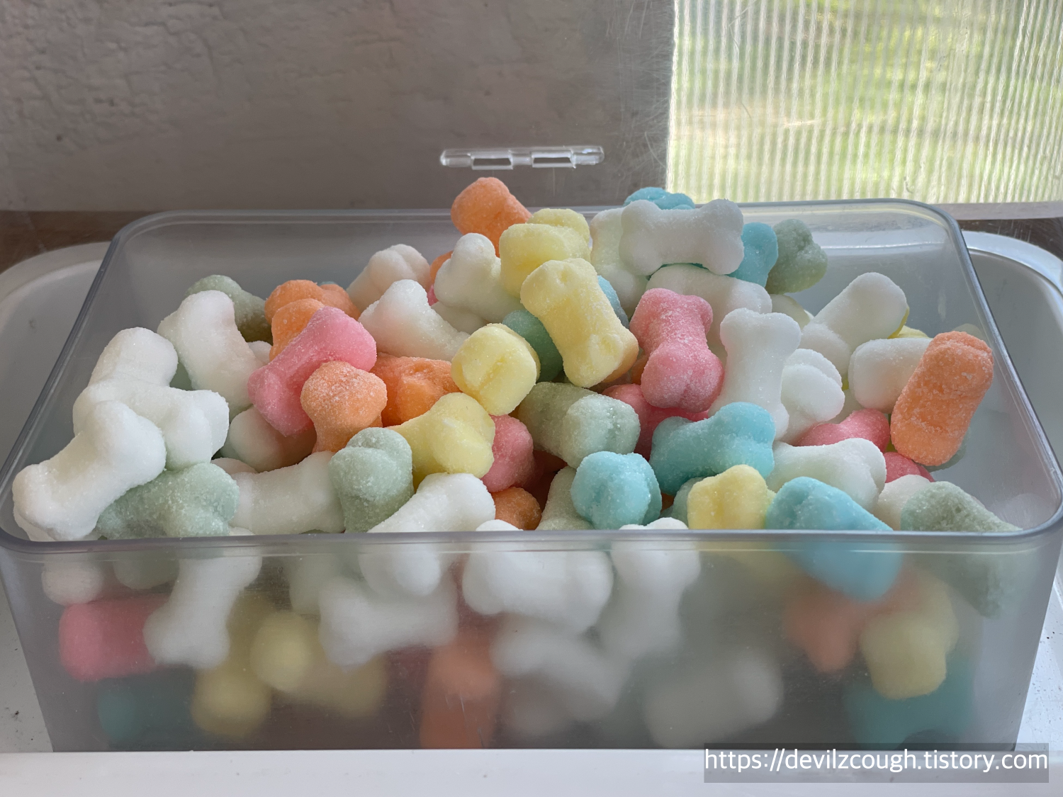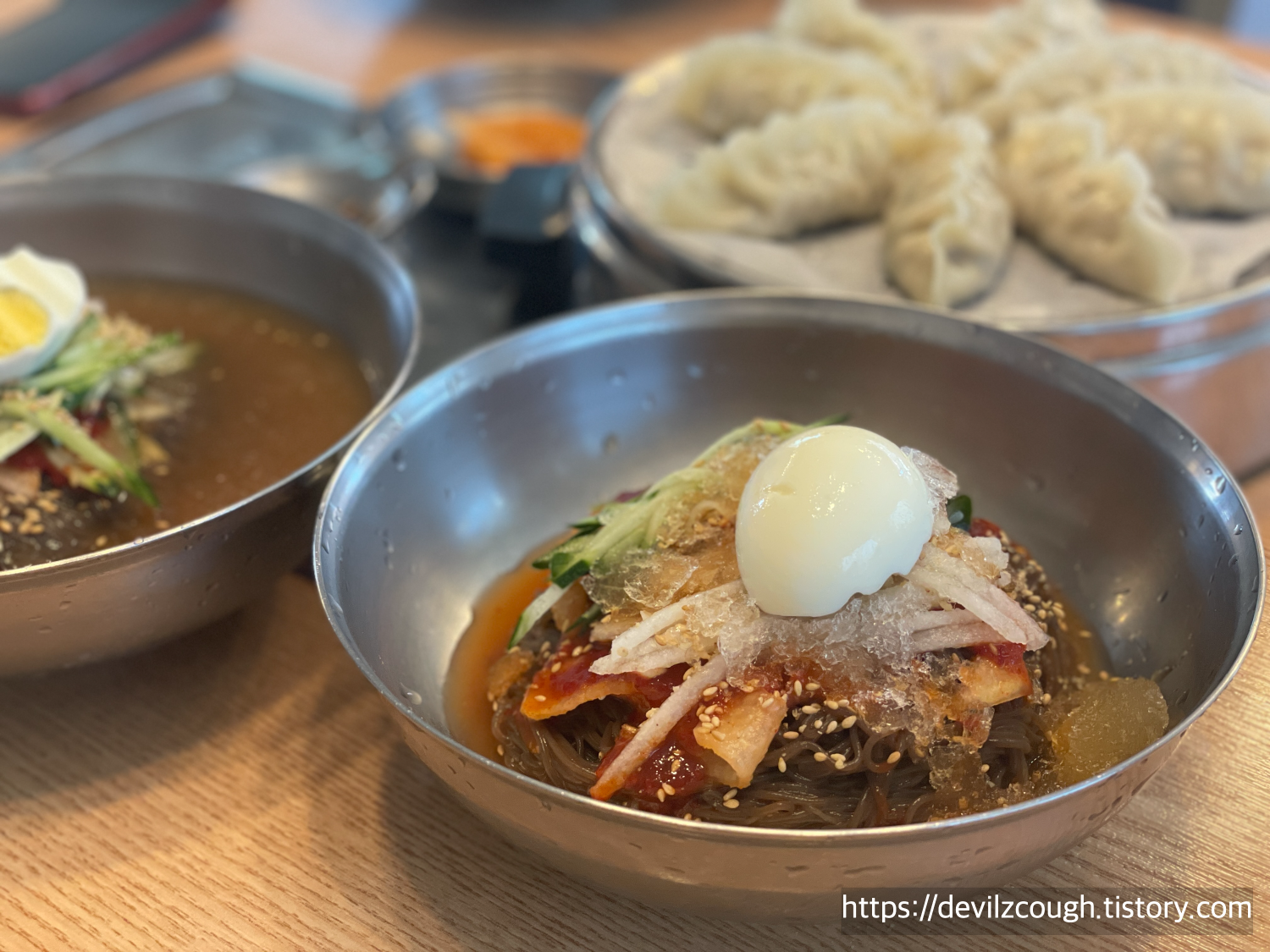 이 근처 식당에는 차를 끌고 오는 사람들도 많은지 지나치는 식당들마다 차들이 꽤 주차되어 있었다. 냉면 집에 들어서서 물냉과 비냉, 교자만두를 주문했는데 전부 맛이 좋았다. 개인적으로는 물냉보단 비냉이 맛있었고, 교자만두도 같이 먹기 딱 좋았다. 집에 갈 땐 의정부 방향으로 가보려고 거의 다 먹었을 때 34번 버스 시간을 체크했고 20분 후에 온다길래 후다닥 화장실도 가고 먹던 것도 정리하고 다시 정류장으로 이동했다. 전체적으로 식당도 깔끔했고 음식은 로봇이 배달해주었고 이런저런 자잘한 서비스들도 좋은 편이었다. 테이블 가장자리에 마스크 줄 걸이도 있으니 필요하다면 이용하시길. 우리는 다 먹고 나갈 때 발견했는데 사실 좋은 디테일인 것 같긴 한데 다른 손님들도 잘 발견하지 못할 것 같았다. 나가는 길에 뼈다귀 모양의 박하사탕도 한 입 물고 갔다.