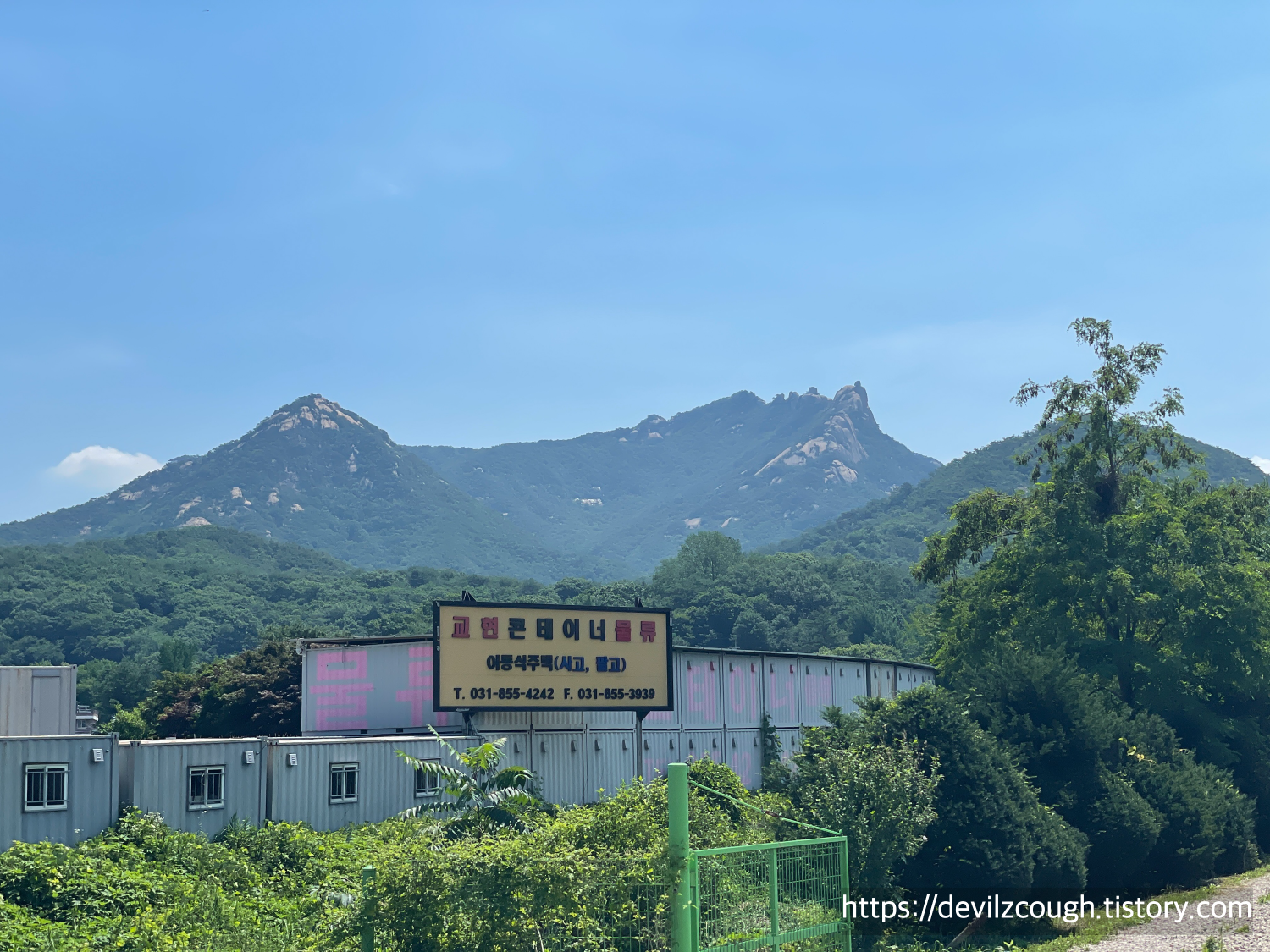 오늘은 기온도 높은 편이고 해도 강한 편이었지만 구간 대부분이 산길이고 나무가 많아서 해를 직접적으로 받을 일은 그리 많지 않았다. 습도로 인해 땀이 많이 나고 덥긴 했지만 뜨겁지는 않았다. 조금 가다 보면 전망 데크(사기막 전망대) 같은 것이 있는데 그곳에서 인수봉, 백운대와 같은 봉우리를 볼 수 있다. (이런 뷰 매우 좋아하는 편)