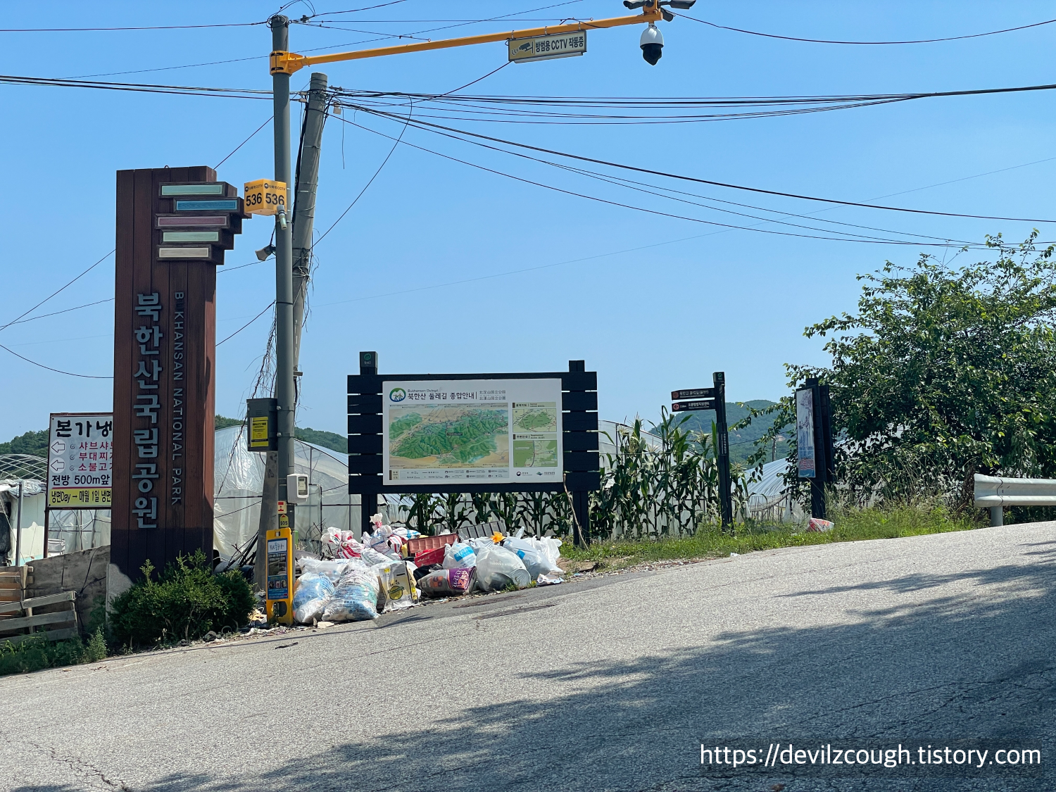12구간의 종료 지점은 이렇게 보도를 따라 쭉 걷다가 큼직한 '북한산 국립공원' 안내판을 만나면 끝이다. 그곳은 13구간의 시작 지점이기도 하지만 21구간 우이령길의 시작 또는 종료 지점이기도 하다. 그 옆에 CU 편의점도 있고 눈에 띄어 쉽게 발견할 수 있다. 근처에 버스 정류장도 바로 찾을 수 있다.