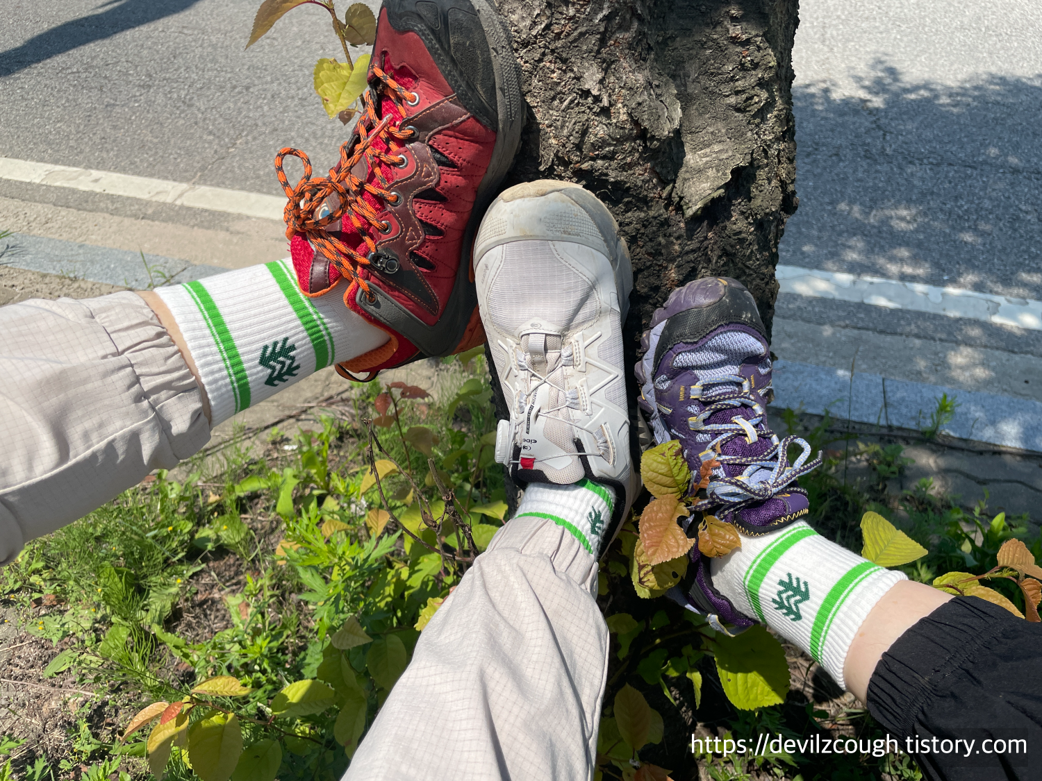 TMI. 이번에도 고모가 같이 갔는데 코오롱(스포츠)에서 등산 바지와 상의, 가방까지 맞춰 입고 오셨다. 근데 세 명 전부 코오롱 양말을 신고 와서 기념으로 한 장 찍었다. ㅋㅋ 아 그리고 고모가 산 등산 바지가 내 등산 바지와 동일한 모델이었던 것. 의도치 않은 커플룩이 되어버렸다. 코오롱 등산 바지에 대해 좀 더 얘기하자면 나는 키가 작은 편인데 다른 브랜드들은 가장 작은 사이즈도 기장이 좀 길다. 그런데 코오롱만은 작은 사이즈가 있어 내가 입기에 아주 안성맞춤이었달까.. 한참 등산화 살 때도 마음에 드는 것이 있었고 (여전히 눈독 들이고 있는 신발이 있다 😂) 바지 사이즈에 대해 너무 만족스러워서 괜히 더 애정이 가는 브랜드다.